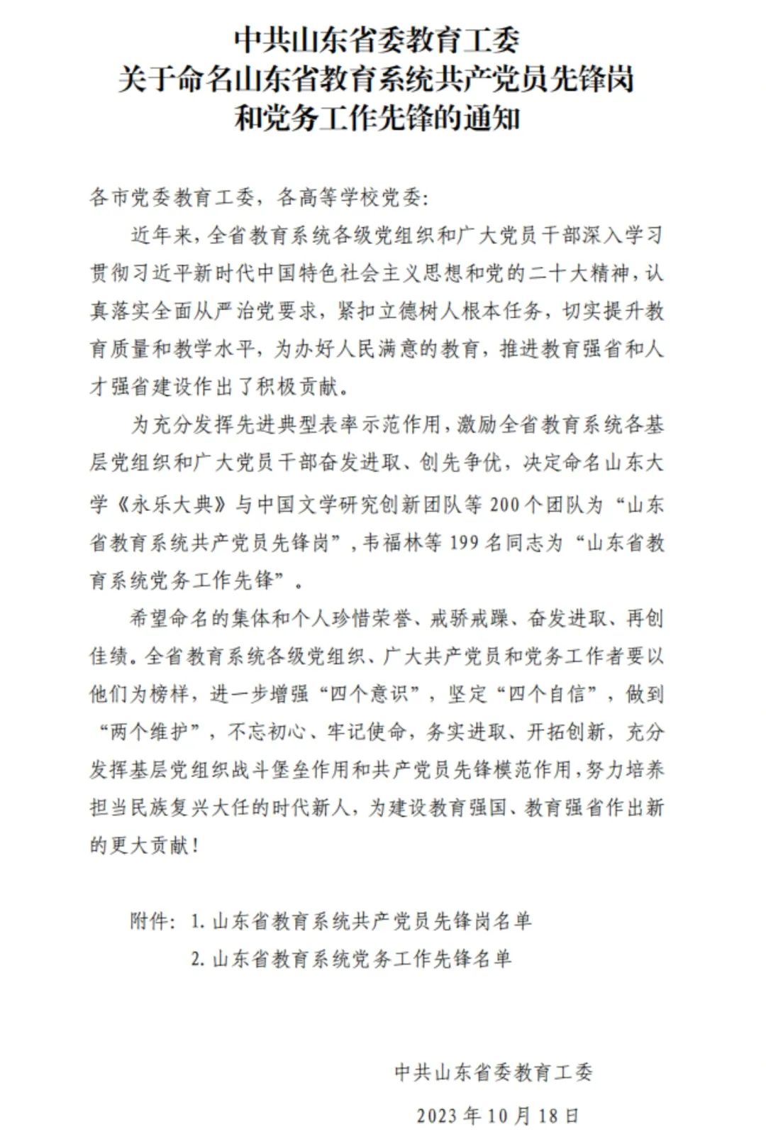 近日,中共山东省委教育工委组织的“全省教育系统党务工作先锋、共产党员先锋岗遴选工作”评选结果落定,点点体育党支部荣获“山东省教育系统共产党员先锋岗”称号。
