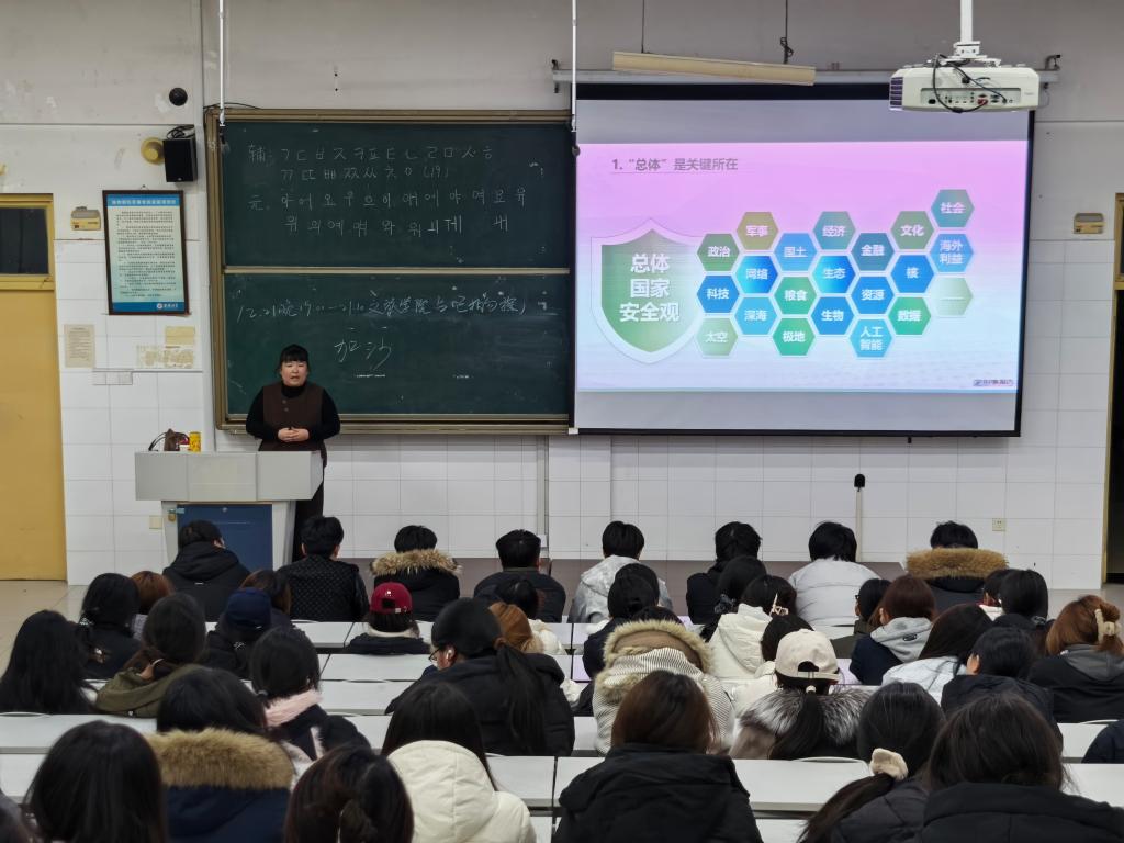 授课过程中,娄敬围绕政治安全、军事安全、经济安全、网络安全等关键领域,通过案例剖析、数据解读、互动问答等多种形式,系统讲解了当前我国面临的安全形势与应对策略。强调青年学生要树立“国防有责、匹夫有份”的观念;在网络安全板块,她针对校园常见的网络诈骗、信息泄露等风险点,给出了具体的防范建议,引导学生规范网络行为,守护个人与国家信息安全。