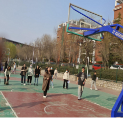 3月8日下午,组织全体女教师在篮球场进行定点投篮,学院领导和男教师们一起观看,为女教师加油喝彩。