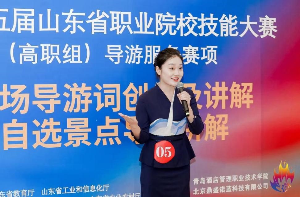 本次大赛由山东省教育厅、山东省工业和信息化厅、山东省人力资源和社会保障厅、山东省农业农村厅联合主办,共有34名选手代表所在院校参加了比赛。赛项规程按国赛标准设定,旨在更贴近职场真实情境,全面考察选手的专业技能水平和综合素质。邢晓雅同学认真准备、刻苦训练,在比赛现场发挥稳定、讲解生动,用专业水平、专注态度和饱满热情展现了文旅学子的青春风采。