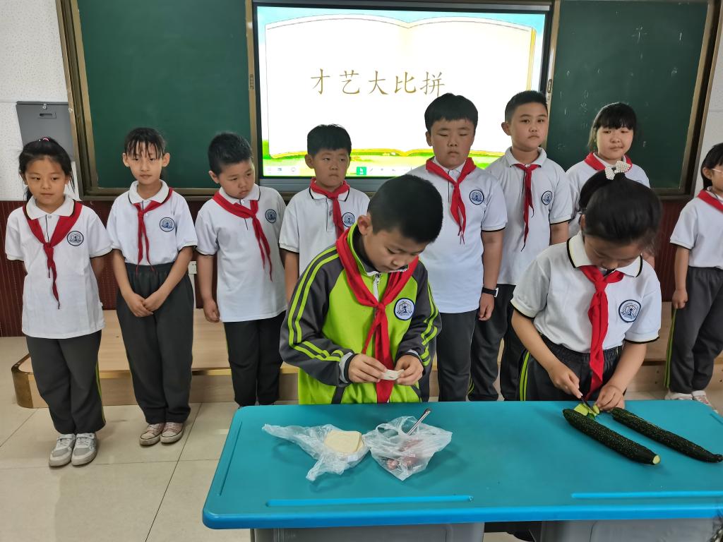 翟萌萌老师展示了“综合实践活动”课程中“我是小厨师职业体验活动”主题课,课堂上,职业体验调查组、采访组、课堂组、实践组四个小组做了汇报交流。