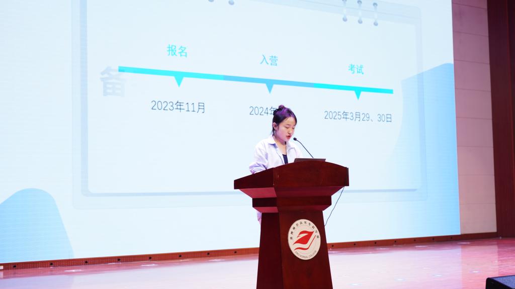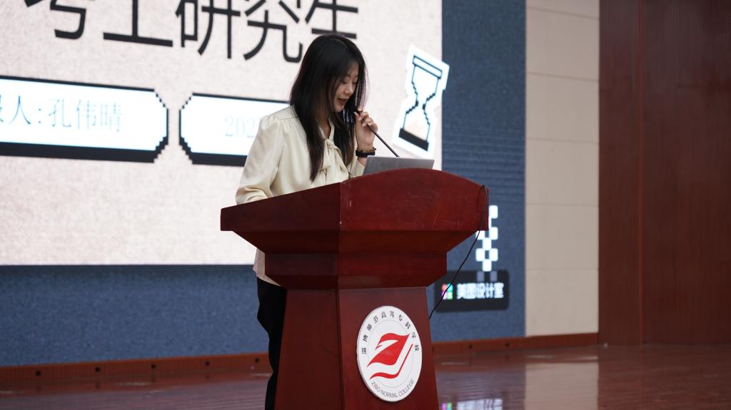 优秀毕业生代表孔伟晴、李薪茹分别分享升学经验。孔伟晴同学以“量力而行、持之以恒、精研计划”为重点,讲述从自考本科到全日制硕士研究生的进阶历程;李薪茹同学则从心态管理、效率提升、作息优化三个维度,系统阐述专升本备考策略,强调“基础扎实、真题导向、复盘增效”的学习方法论。