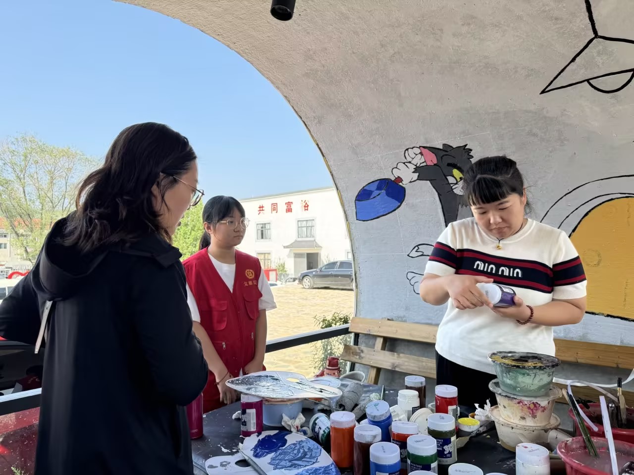 7月18日,“传‘齐’有我志愿服务队”的队员们依旧满怀激情的投入到墙绘创作中。墙绘过程中,队员们力求完美,考虑到游客所需并结合当地艾草元素,精心构思,对图案进行设计创新,让作品更加生动形象。队员们团结协作,认真打磨,不断对作品进行修整。从构图到上色再到完成,墙绘为齐艾文化园增添了一道道亮丽的风景线。