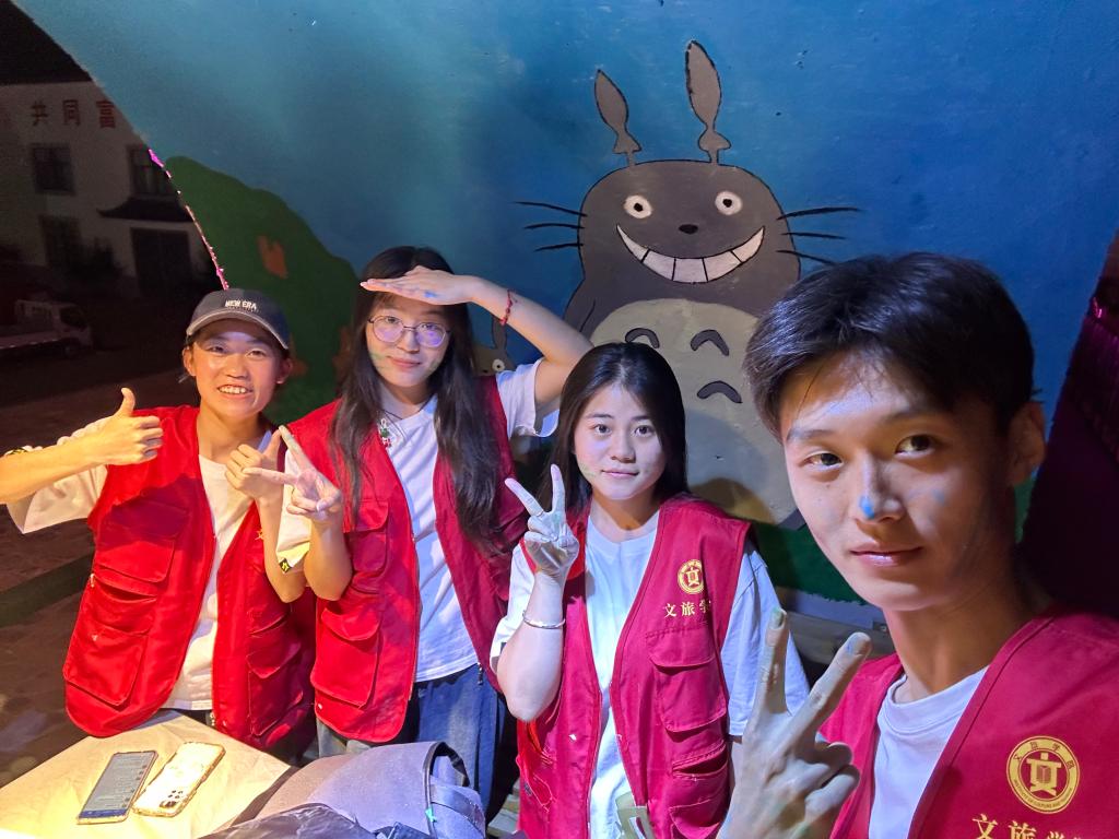 这次三下乡社会实践活动,让一幅幅的画稿,在乡村的墙上绽放。我绘出希望,也绘出对未来的期待,每一笔都是对美好生活的向往。点点汗水,滴滴友情,累并快乐着。