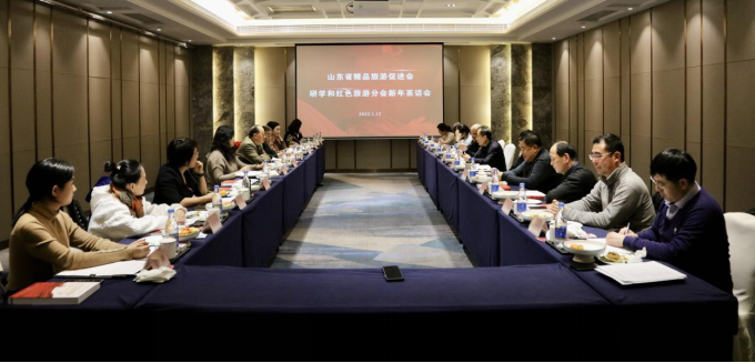 研学分会会长冯维国主持茶话会,并向与会嘉宾介绍了研学和红色旅游分会2021年工作总结2022年工作计划。他从分会建设和活动组织两个方面介绍分会2021年主要工作;2022年,分会将重点举办山东省研学旅行研讨会、山东省精品研学旅游线路资源对接交流会,开展齐鲁精品研学线路体验活动,搭建研学大赛官方服务平台,高质量筹备举办第三届山东省研学旅行创新线路设计大赛。