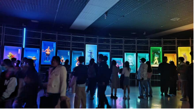 本届双年展作品的一大特点,便是观赏与互动性十足,人们戴上耳机,听取记录自海底鲸鱼的歌声,也有通过特定装置记录了来自太空的震动频率,可谓上天入地,体现出了人们的艺术创意不受空间的限制。让前来参观的老师们印象深刻的一个装置艺术,是一个密闭的空间,人们掀开幕布进入其中,映入眼帘的是一间隔着玻璃墙的老教室,人们坐在特定座位上,自己的影像会投射到对应的教室座位上,置身其中仿佛时空穿越,让人们感受到了岁月带来的洗礼。看着与这些艺术作品积极互动的观众,同行的教师由衷感慨:艺术作品最重要的就是让观众产生共情。