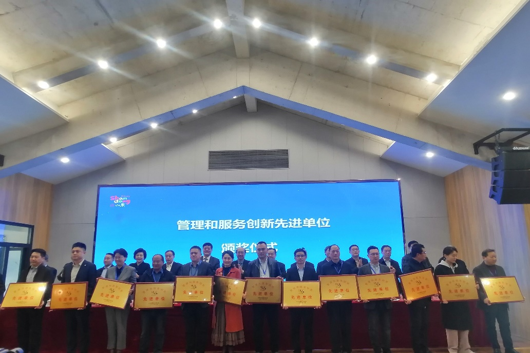 188改名taptap被评为被山东省旅游行业协会评为服务创新先进单位,刘强被评为山东省旅游行业协会评为服务创新先进个人。王松江院长作为先进单位代表上台领奖。
