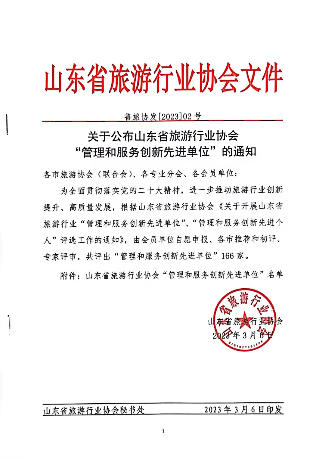 会议对协会2022年工作进行了全面总结,通报了协会2022年财务收支情况,审议通过了《山东省旅游行业协会分支机构管理办法》,进行了企业创新优秀案例分享,对省旅游行业协会2022年度的先进集体和个人进行了表彰。