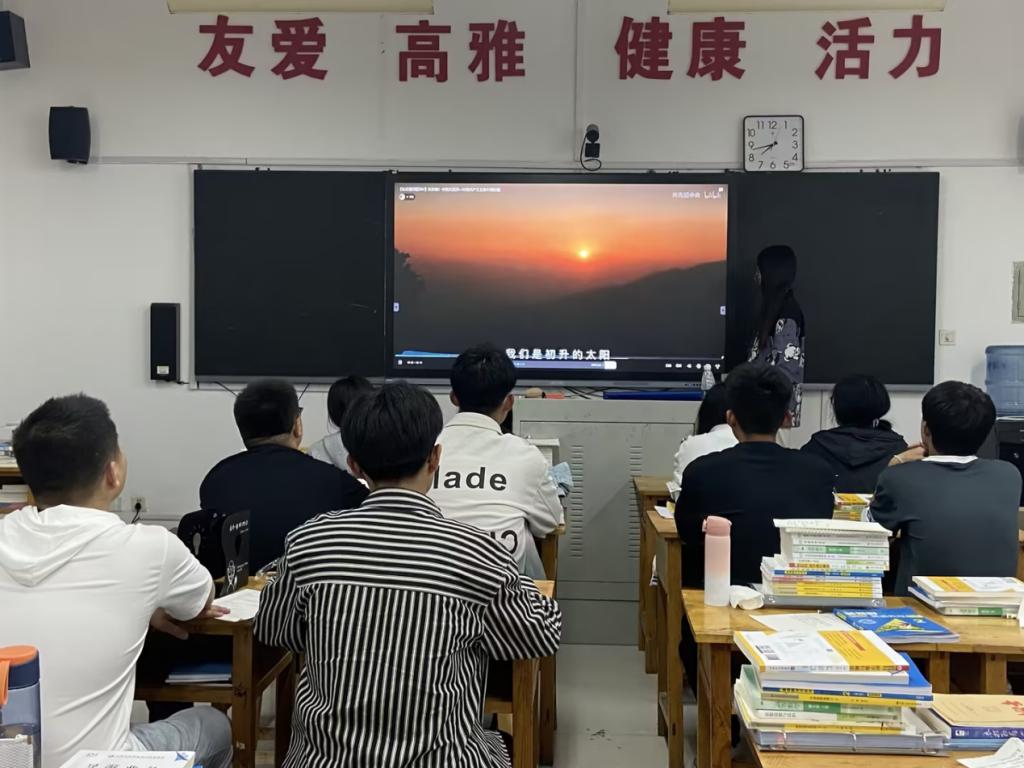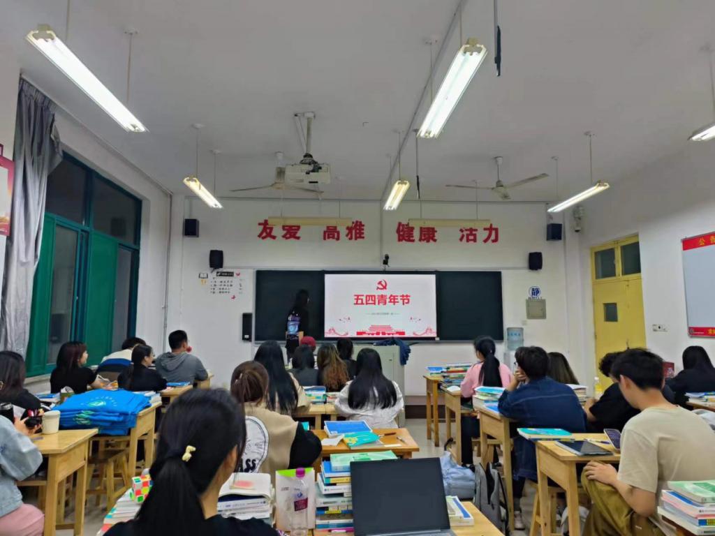 本次“五四”主题团日活动分为三个部分。首先,由各团支书带领同学们集中学习学校党委书记满军送给全校青年朋友们的“四句话”,重温五四运动历史,深入学习五四精神的核心内容,并围绕如何弘扬五四精神展开热烈讨论。其次,全体团员重温入团誓词,在一句句铿锵有力的誓言声中,坚定听党话、跟党走的初心,重燃艰苦奋斗、昂扬向上的激情。最后,大家齐唱团歌《光荣啊!中国共青团》,在嘹亮的团歌声中,唱出了青春激昂,抒发着新时代青年不忘初心跟党走、青春建功新时代的豪迈和担当。