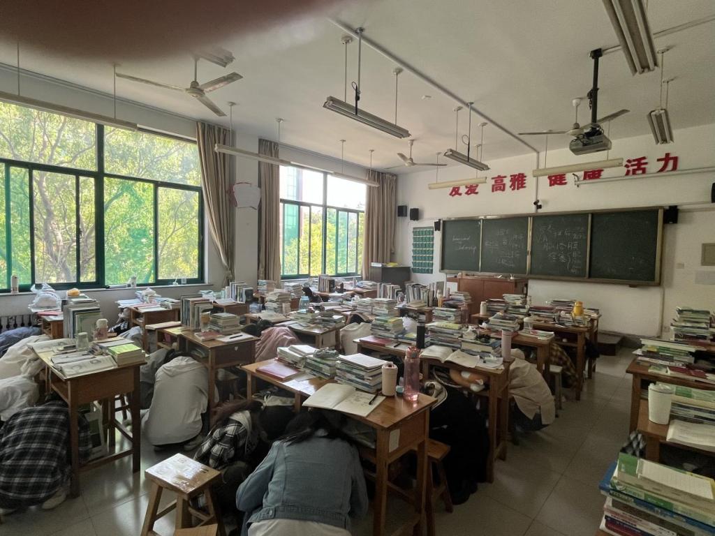 12日上午随着第一声警报的响起,老师立即组织同学们迅速抱头躲在课桌等承重物旁边,用桌子上的课本保护头部不受伤害。