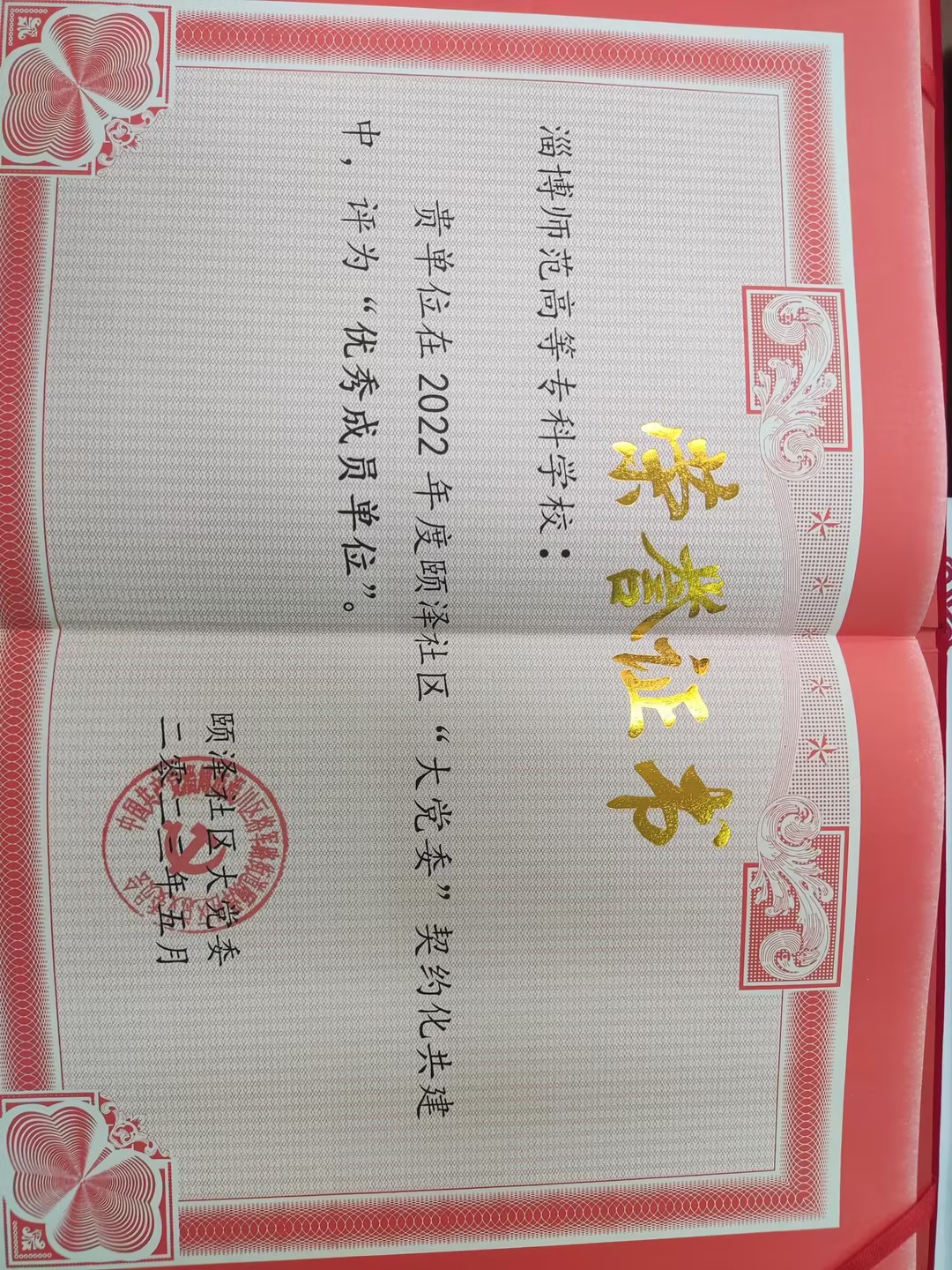 5月23日上午,在淄川区颐泽社区党员会议室召开2022年度“大党委”工作总结表彰会,淄川区委组织部、将军路街道办分管领导以及“大党委”成员单位参加会议,我校被评为颐泽社区“大党委”契约化党建共建“优秀成员单位”。