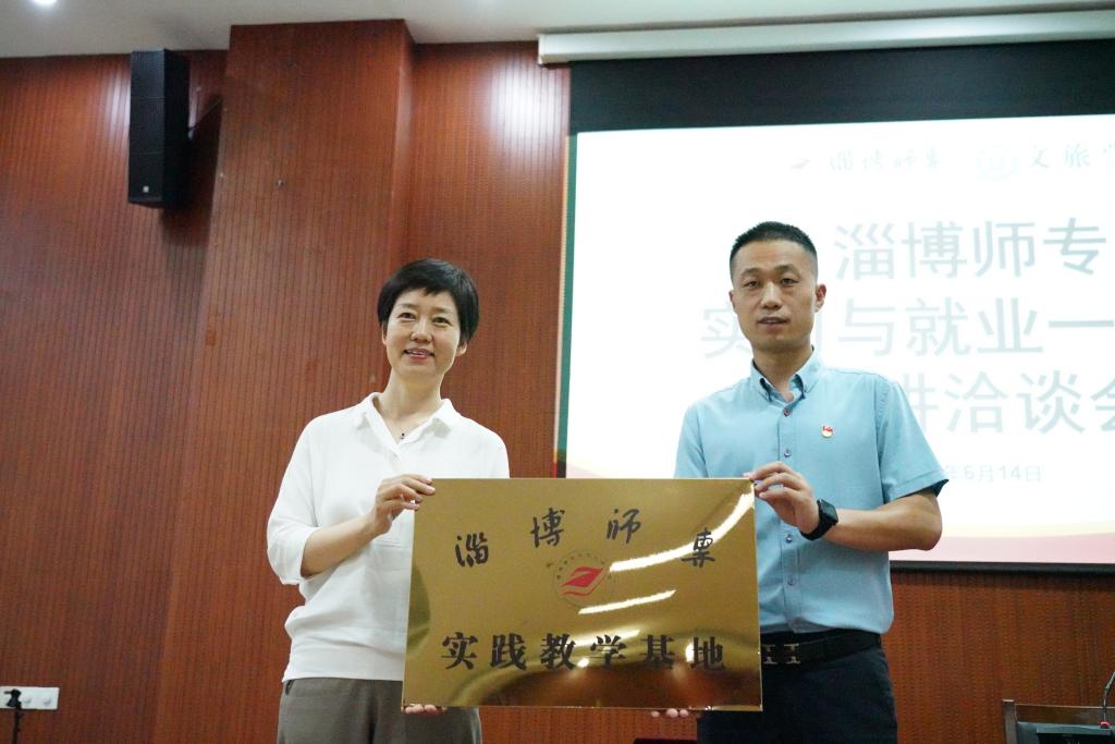 会上,周巧玲为参会企业进行了淄博师专“实践教学基地”的授牌。