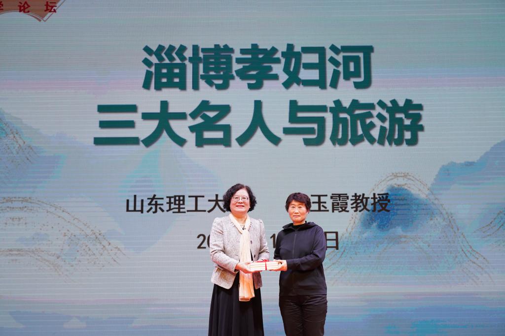 张玉霞作了题为“淄博孝妇河三大名人与旅游”为主题的学术讲座,与研学旅行管理与服务专业师生进行了深入的学术交流。张玉霞就淄博孝妇河畔的三大文化名人王渔洋、蒲松龄、赵执信的人物生平展开介绍,结合三人的著作和成就,深刻剖析了三位文化名人的思想,及其蕴含着的中华优秀传统文化精髓,并结合淄博文旅发展与文化名人资源的利用,阐述了自己的看法。学术讲座中,张教授不时邀请同学们积极参与到讲堂中来,现场氛围十分活跃,交流活动取得圆满成功。