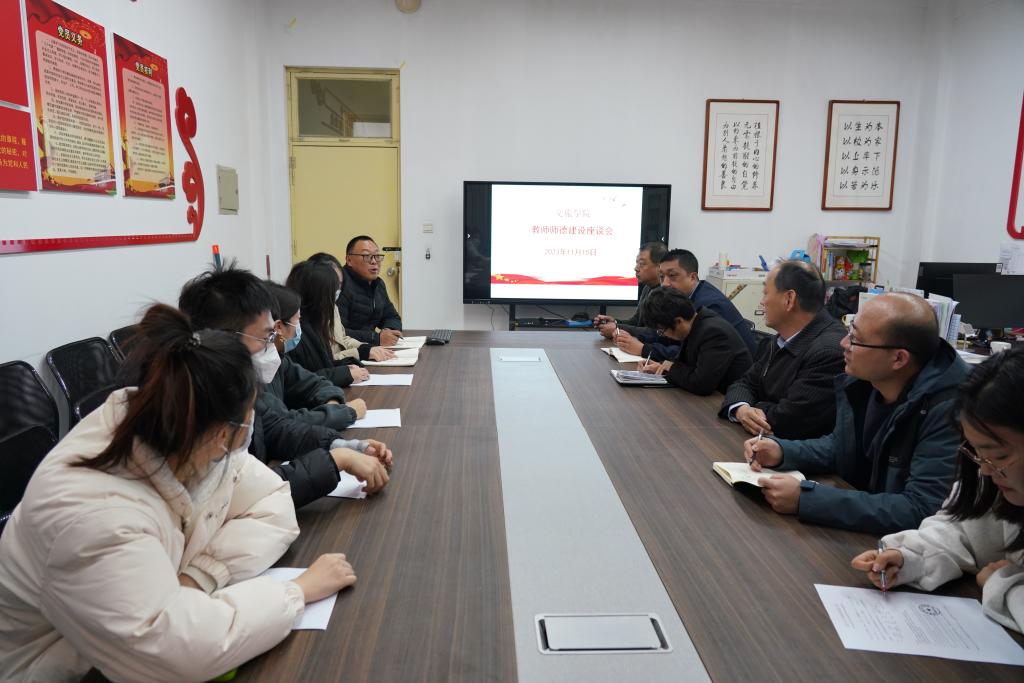 11月15号,188改名taptap在会议室召开教师师德建设座谈会。会议围绕深入贯彻党的二十大精神、做“五有”好老师开展,由副院长丁修振主持,学院领导和教师代表参加。