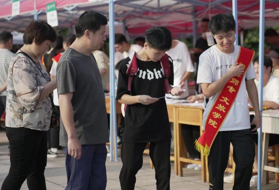 来到班级报到处,新生们在这里完成注册、交接材料、咨询信息,每一个环节都井然有序。班导班助主动与新同学交流,贴心的志愿者在旁边解答疑惑,介绍学院的活动,现场既温馨又有序。