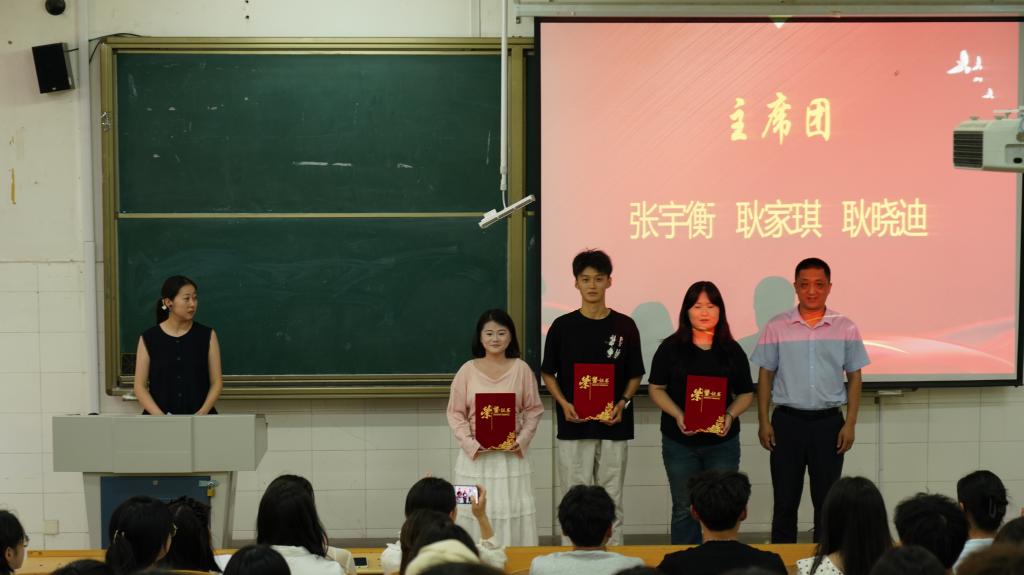 会议在团学工作集锦视频《青春回忆录》中拉开了帷幕。随后,学工队伍教师代表依次为上届学生会干部颁发了荣誉证书。