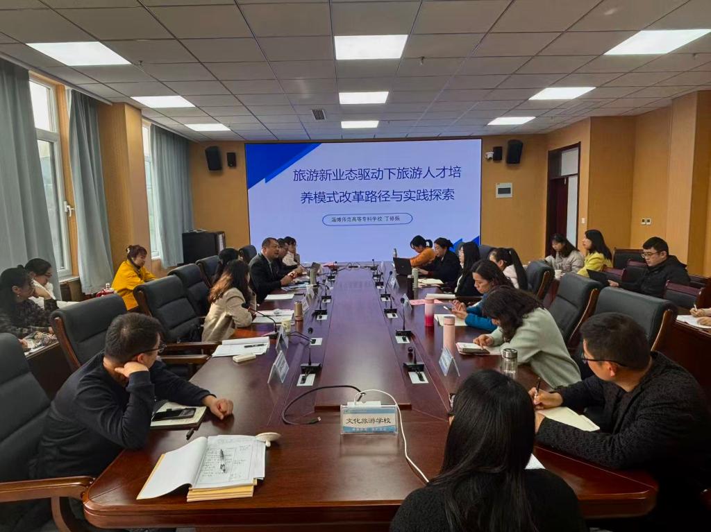 10月24日,由淄博市职业教育研究院组织的“淄博市中等职业学校旅游大类专业研修活动”在淄博工贸学校西校区举行,全市各中职学校旅游专业负责人及骨干教师参会。我校丁修振老师受邀作《旅游新业态驱动下旅游人才培养模式改革路径与实践探索》专题辅导报告,为全市中职旅游教育教学改革与专业建设提供方向指引。