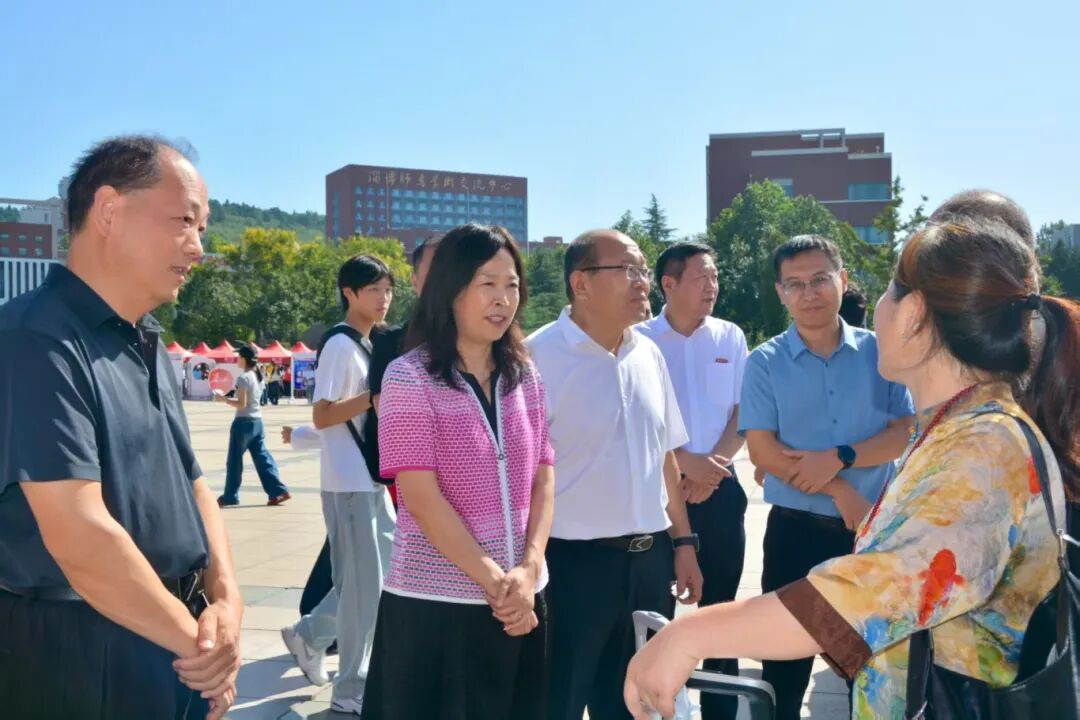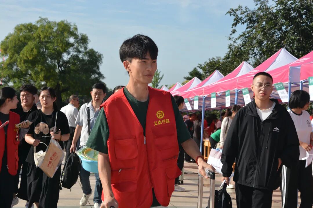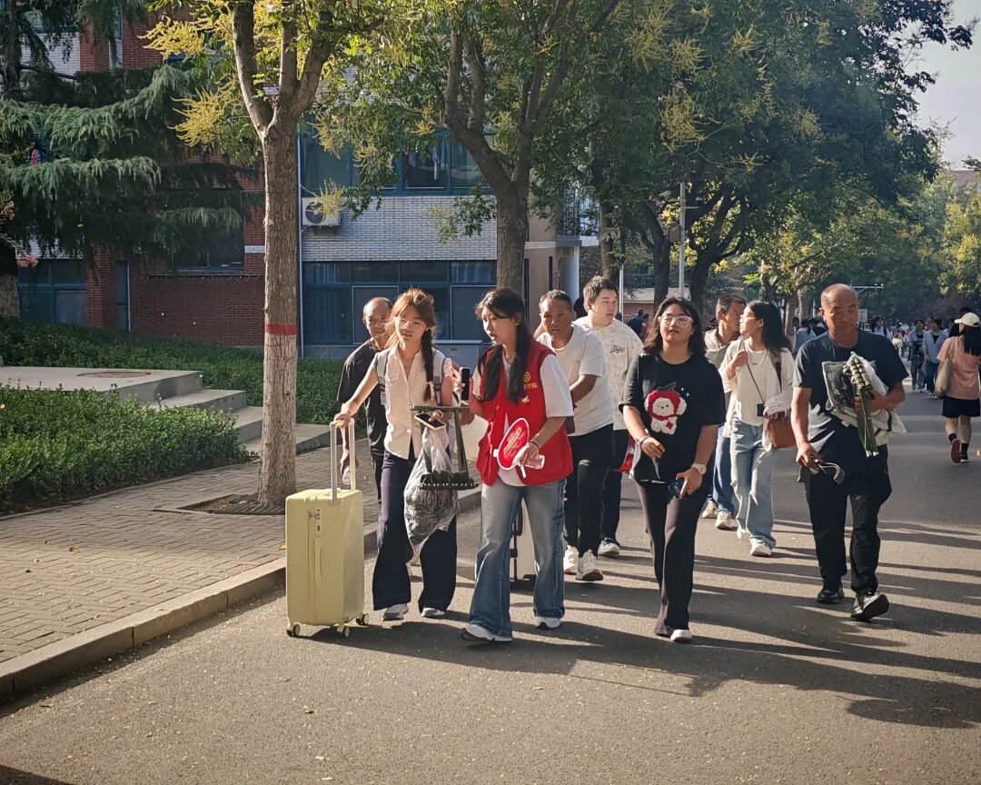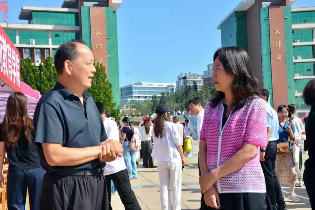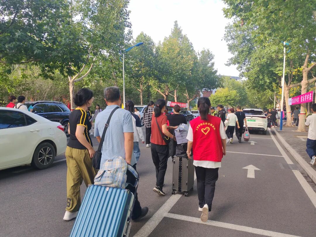 学校领导深入迎新现场,与新生及新生家长亲切交谈,并慰问志愿者与工作人员。